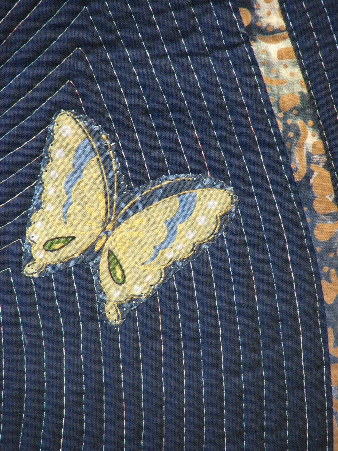 Moonlight Mood (detail) Commercial fabrics; machine pieced & quilted 23″w x 25″h Price available upon request