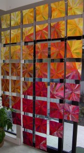 Both of these quilts are from my collage series and are made up of collaged squares joined with jewelry chain that I color altered with a butane torch. I’d love for you to buy one of them – or both! Please go to the Contact Me page for details.