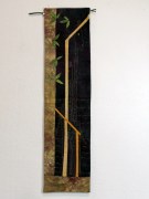 Hand-dyed cotton & silk fabrics, ribbon, and beads; machine pieced & hand-embellished; natural stick