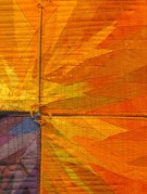 Fabrics hand dyed by the artist, polyester thread, telephone wire; machine collaged & quilted, hand joined by square knots