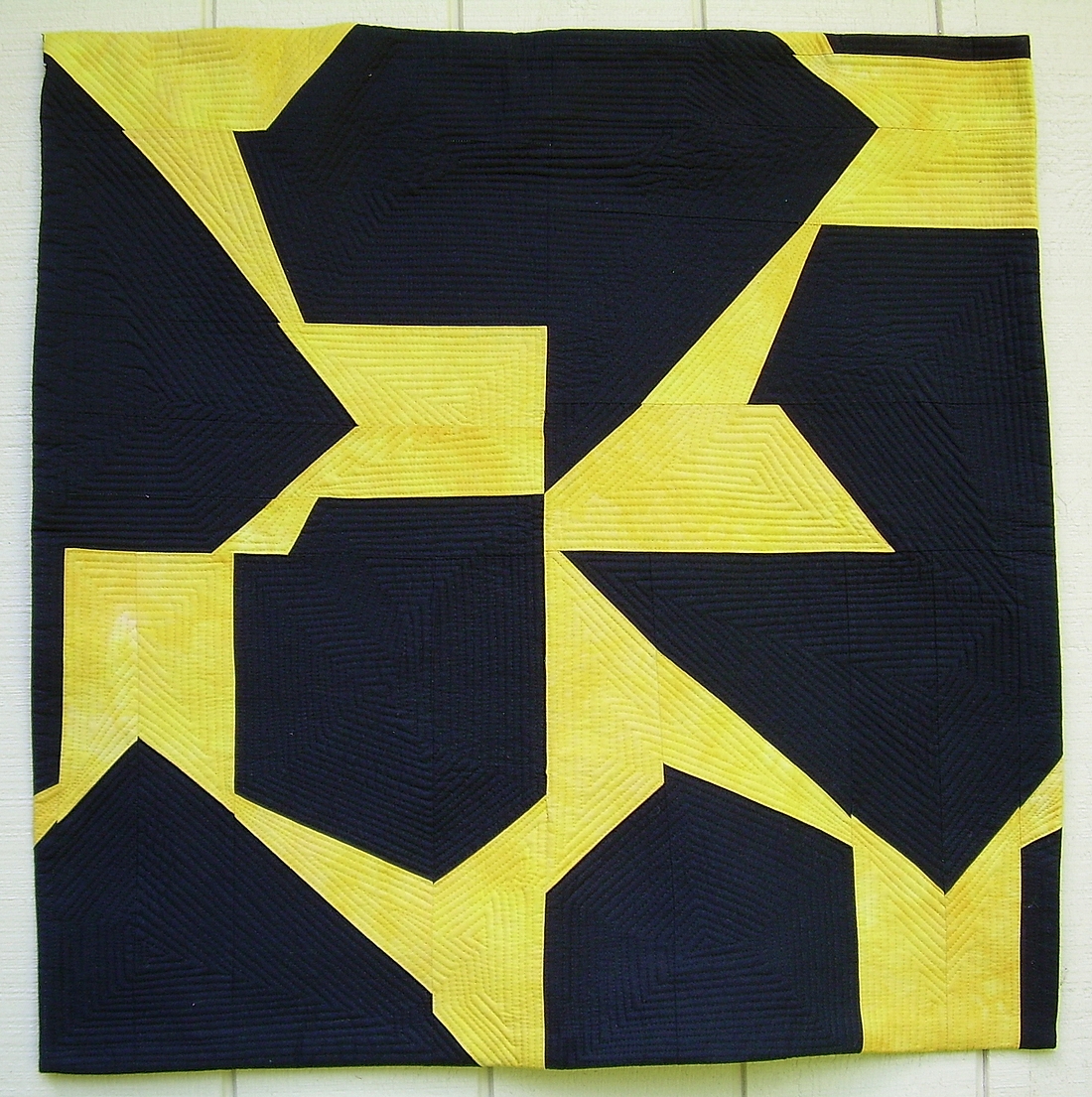 Fabrics hand dyed by the artist & commercial fabrics; machine pieced & quilted