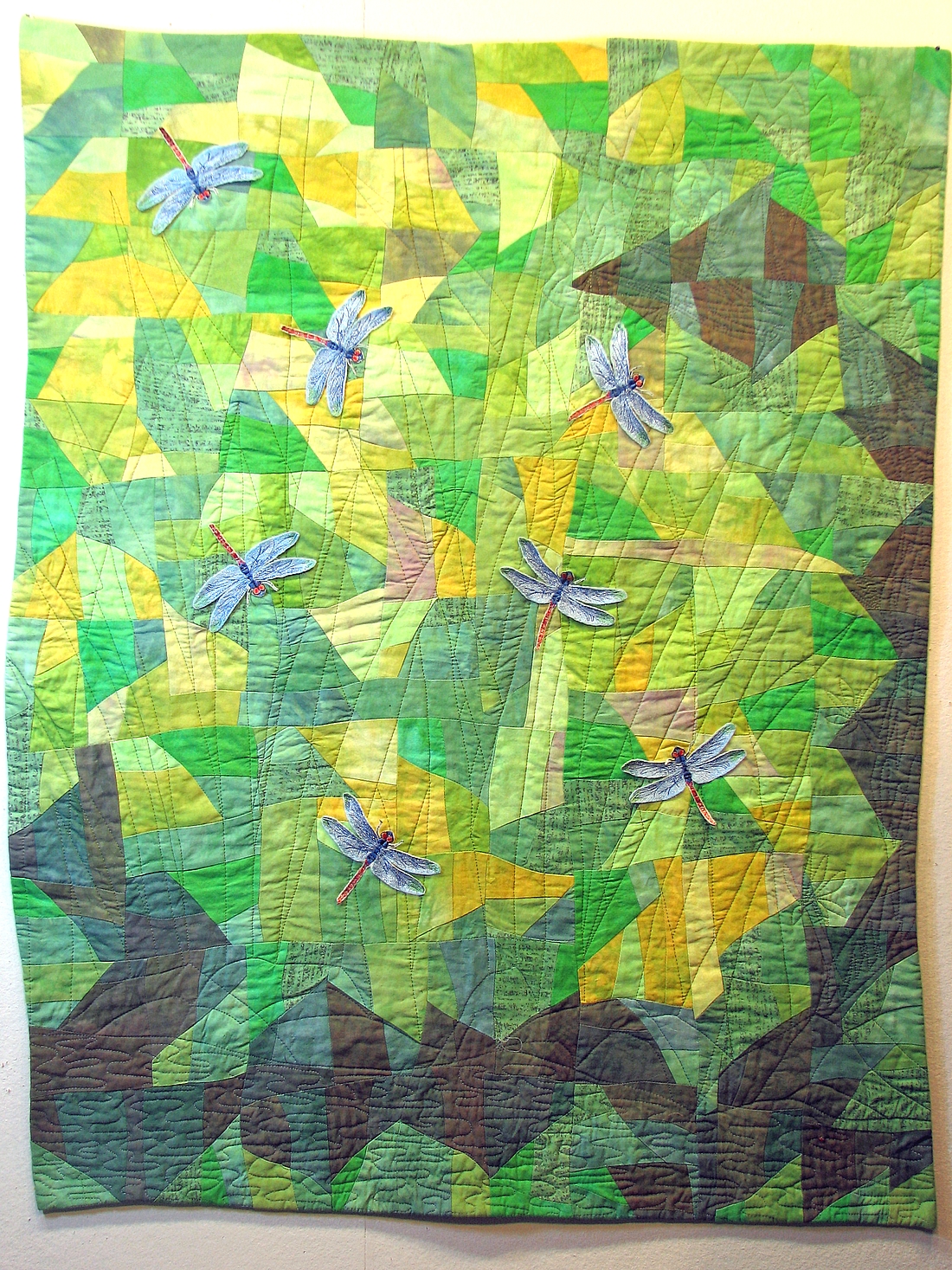 Fabrics hand dyed by the artist; machine pieced & quilted; dragonflies machine embroidered by Lois Barber