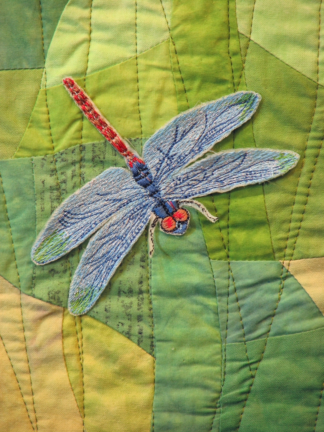 Fabrics hand dyed by the artist; machine pieced & quilted; dragonflies machine embroidered by Lois Barber